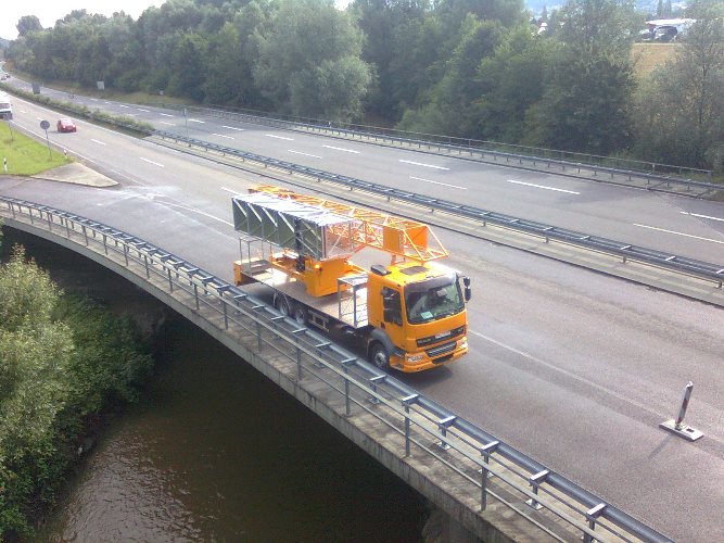 The load capacity of 500 kg on a 1.2m wide platform enables inspection as well as repair work under bridges. The unit is useable 24 hours a day as it is equipped with night-lights powered by the on board generator. Additional equipment is a portable scaffold, which can be used on the complete length of the platform.