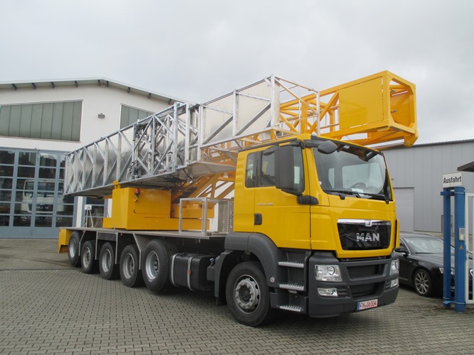The unit was mounted on a MAN truck chassis allowing it to be driven to each work site. With a total weight of only 32,000 kg, the unit is designed to be a self-propelled vehicle requiring no additional effort to move it from site to site.