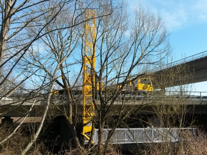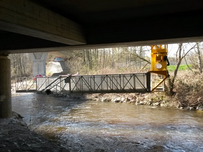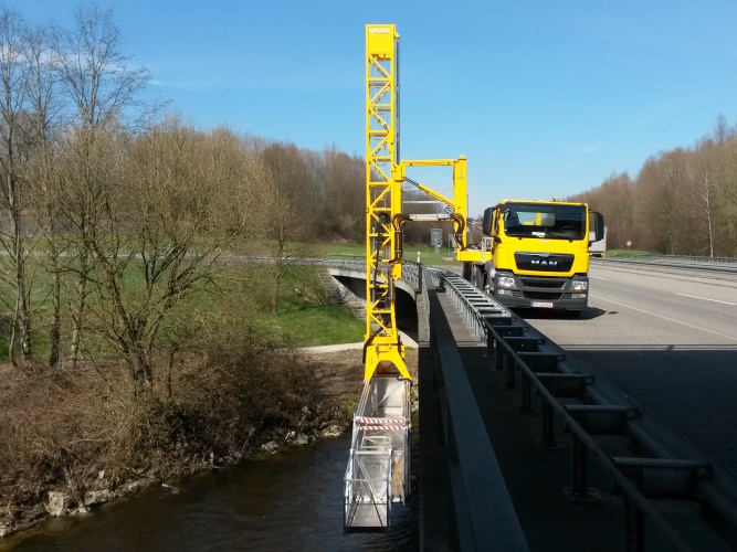 When operating the under-bridge access unit model MBI 200-1,5/S, the platform can reach up to 20.0 m under the bridge. If the customer is using the additional platform extension the reach then goes up to 22.0 m. In addition the lowering depth is a maximum of 9.2 m enabling flexible operation of the machine on different bridges.