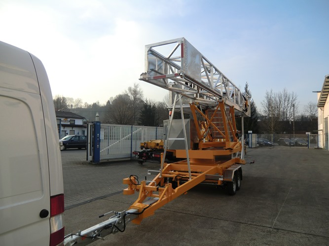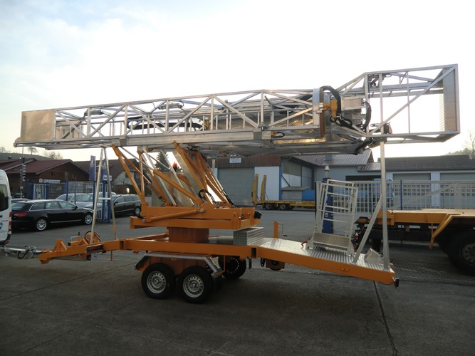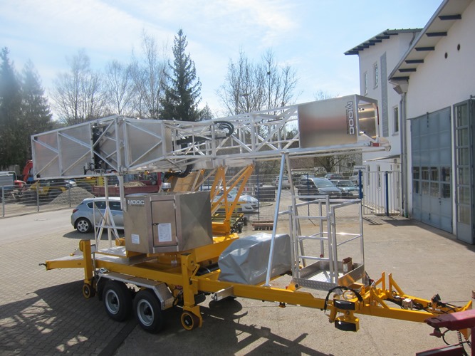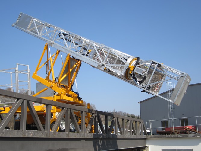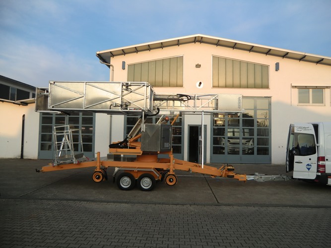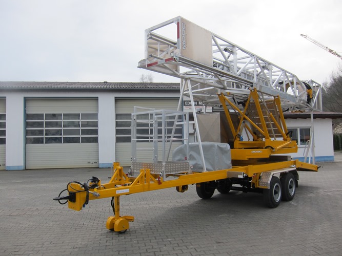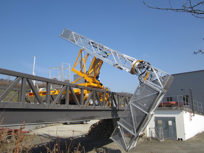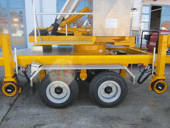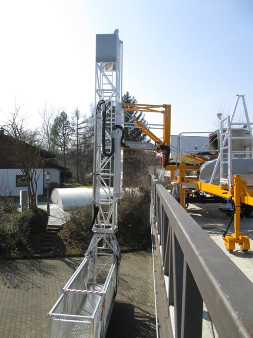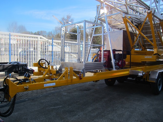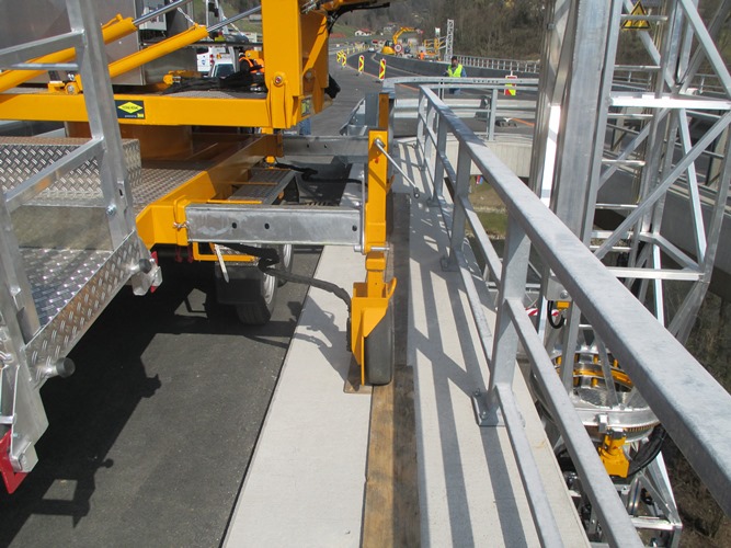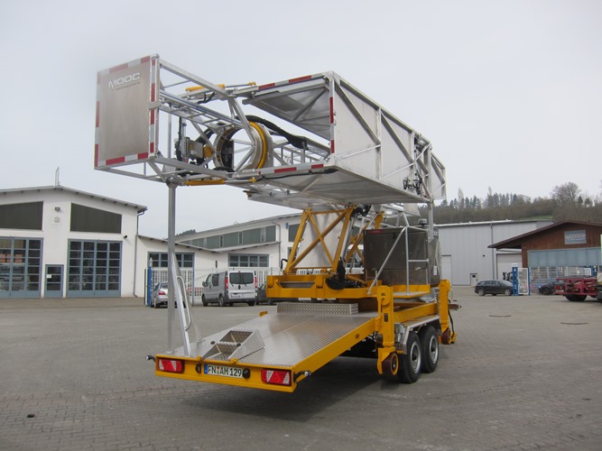 Both units delivered were MBI 70-1/S trailer units and have a horizontal range of up to 7.0 m under the bridge. If the additionally supplied platform extension is used, the range increases up to 8.0 m. The platform is 1.0 m wide and can be loaded with up to 400 kg (200 kg at the end of the platform).