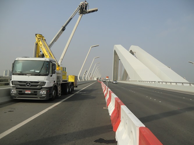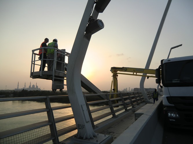 Due to the small placement requirement of only one road lane on the bridge deck, the traffic will only see a minimal effect during use. To defend the unit from weather conditions and corrosion because of the salty sea air in Abu Dhabi, the unit components were treated to withstand the tropical conditions. In addition to a protective paint film, all screwed connections and threads of the hoses installed were in a high-grade steel design.
