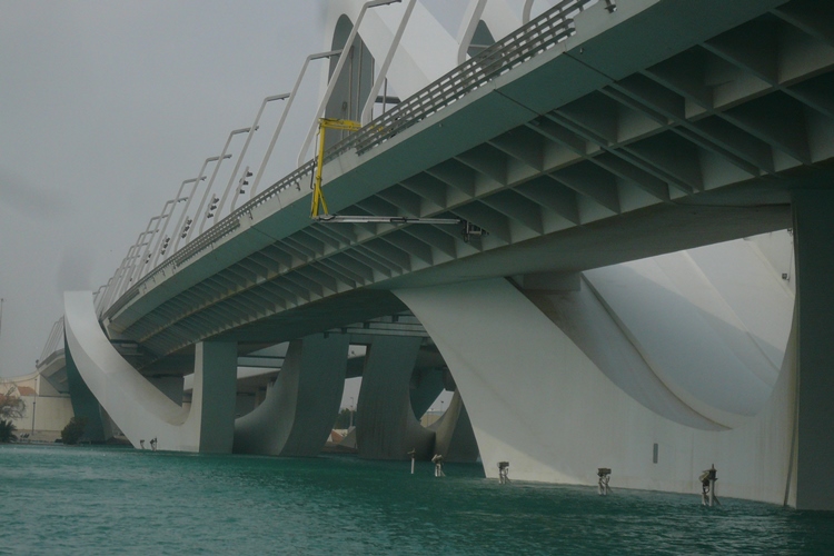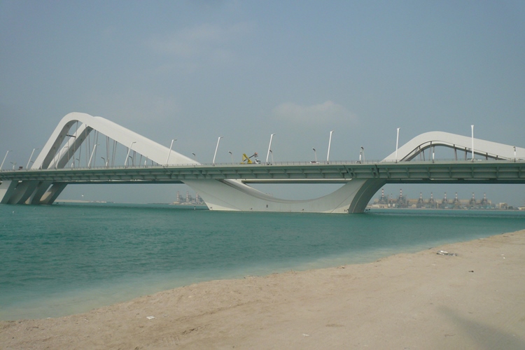 In 2010, MOOG delivered a bucket unit MBL 1300T to Abu Dhabi. The unit was custom ordered and designed for the Sheikh Zayed Bridge. Due to delays while constructing the bridge, the unit was just successfully commissioned to our customer in December 2012. The commissioning of the unit took place during the 6-day training on site at the completed bridge. The bridge is one of three bridges connecting the city Abu Dhabi with the mainland. Due to its impressive architectural design, the bridge is easily recognized by bridge construction engineers the world over. The two four-lane roads are covered by S-shaped arches. The total length of the bridge is 842 m.